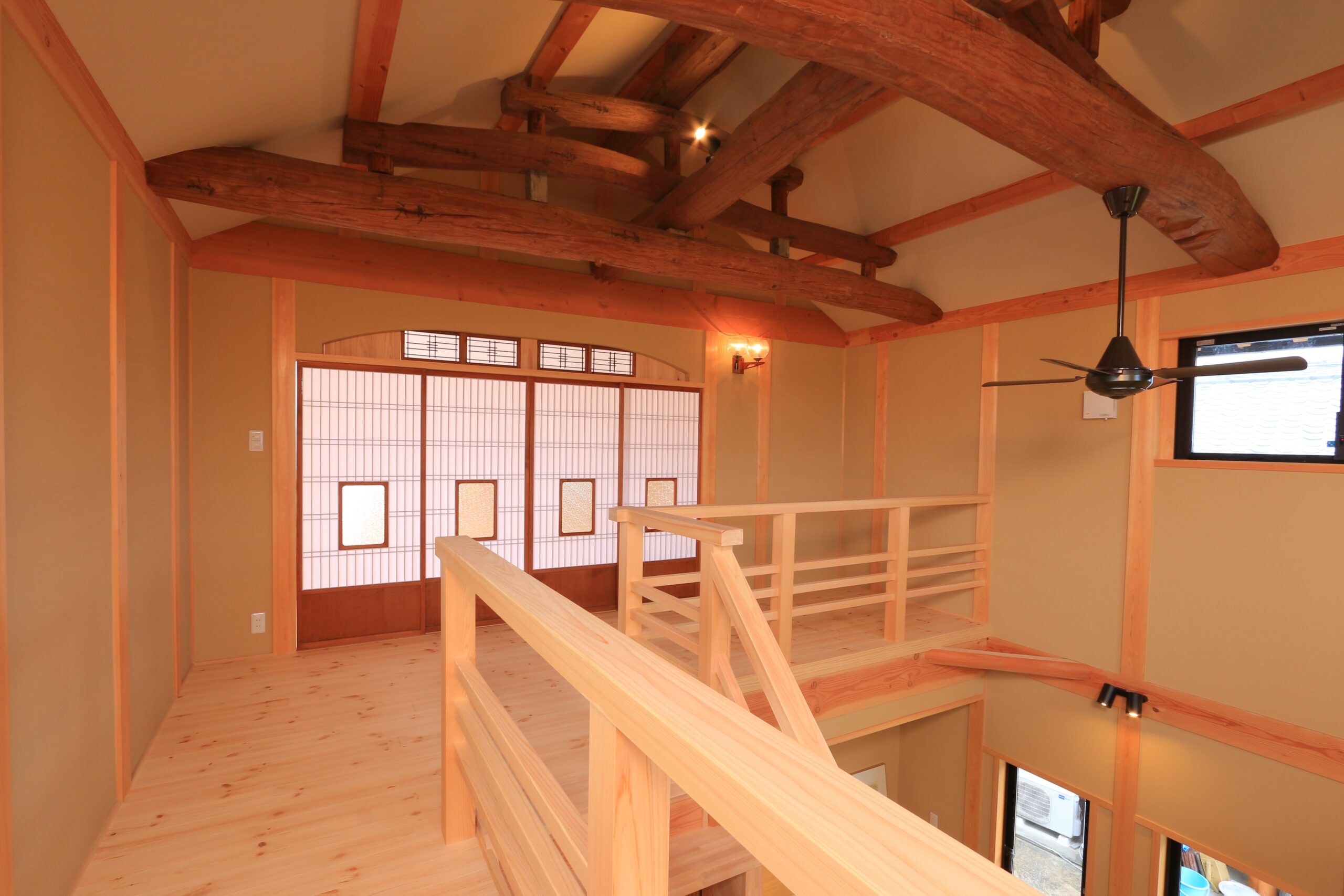 思い出と共に色づいた素材をできるだけ活かし、梁を組みなおす改築を行いました。